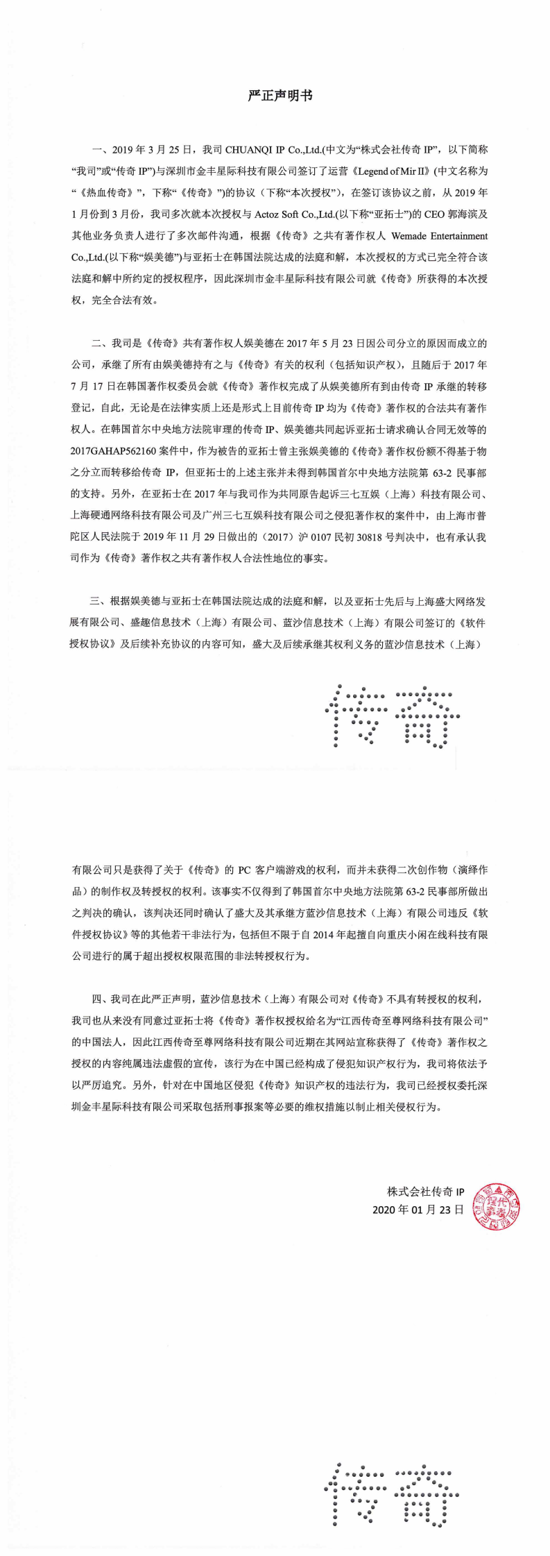 传奇至尊那点事、wemade严正声明